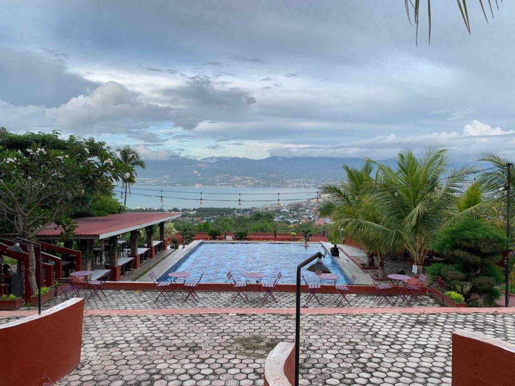 PALU – Deefaa and Qey merupakan salah satu cafe yang menyediakan fasilitas kolam renang. Lokasinya di atas pegunungan Kecamatan Kinovaro, Kabupaten Sigi, Sulawesi Tengah.