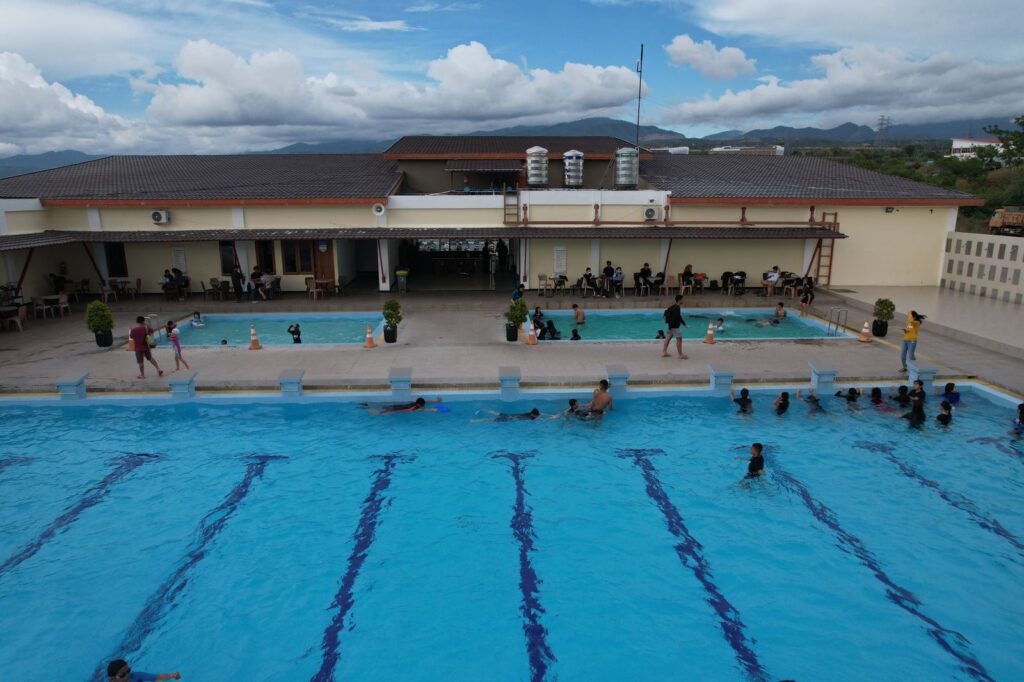PALU – Kolam Paluabara menjadi salah satu tempat favorit anak muda di Kota Palu, Sulawesi Tengah, untuk berenang. Tempat ini juga menyediakan kelas renang untuk pemula.