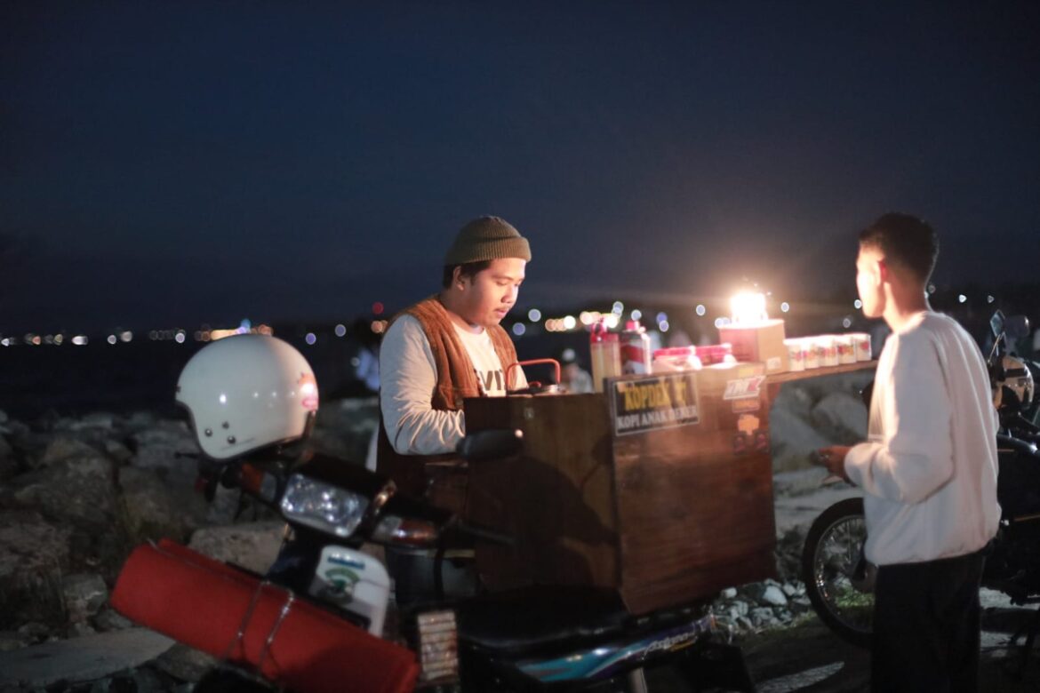 PALU – Ngopi di Kopi Anak Deker 27 hanya Rp 10 ribu. Pedagang kopi keliling ini dapat ditemui di Kabupaten Sigi dan Kota Palu.