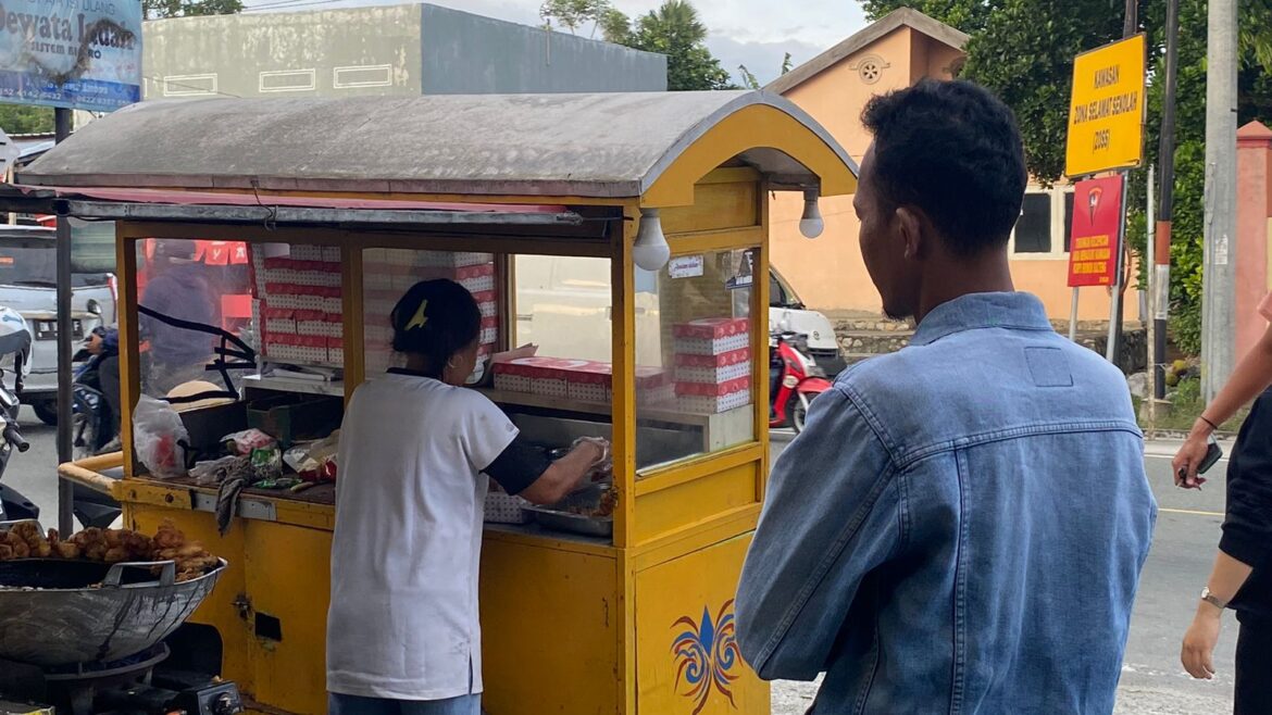 Pedagang pisang goreng ini ditemui tepat di depan Brimob Polda Sulteng. Jarak dari titin nol Palu, lebih kurang 13 kilometer dengan waktu tempuh 25 menit.