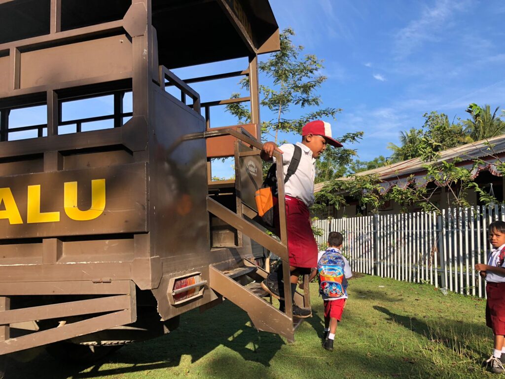 Maka dari itu, Satpol PP Palu menyediakan satu unit armada untuk melakukan antar jemput pelajar SD Uwentumbu.