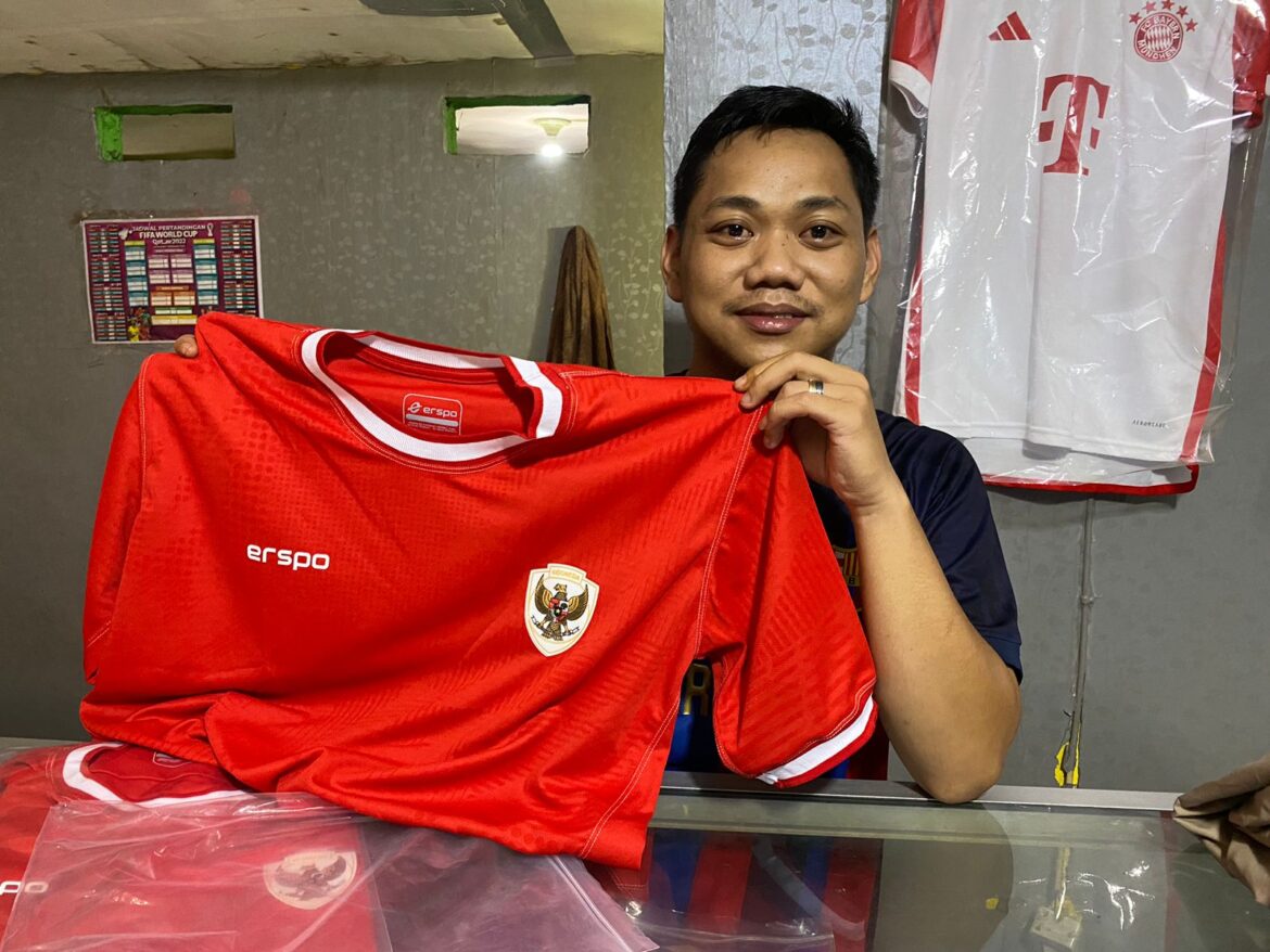 PALU – Lolosnya Timnas U23 Indonesia ke babak Semi Final Piala Asia U23 2024 ternyata membawa keberkahan tersendiri bagi pedagang jersey bola di Kota Palu. Hal itu diakui, Safar Julianto. Pedagang jersey sepak bola yang berdomisili di Jalan Kakatua, Kota Palu itu mengakui sejak lolosnya Timnas Indonesia dari babak group Piala Asia U23 2024 di Qatar, penjualan jersey Timnas Indonesia mulai meningkat.