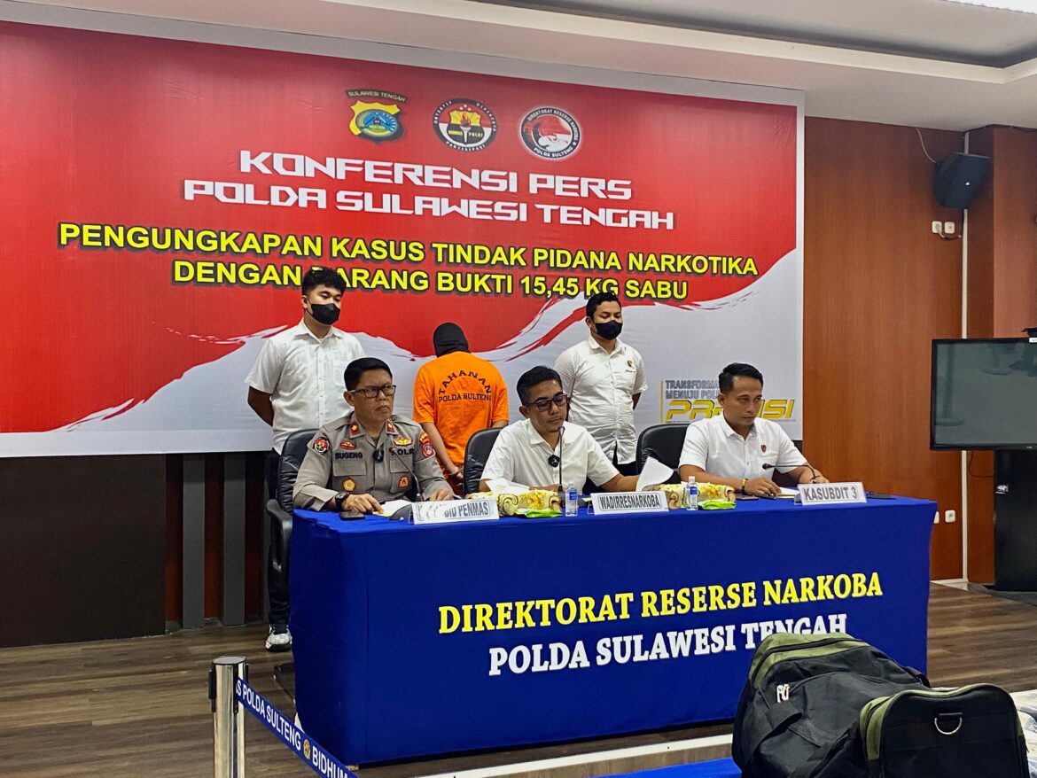 PALU – Ditresnarkoba Polda Sulteng berhasil mengungkap peredaran gelap narkotika jenis sabu-sabu seberat 15,45 Kg di Jembatan Tawaeli, Jalan Trans Sulawesi, Kecamatan Palu Utara, Kota Palu, Sulteng, Sabtu (11/5) dini hari.